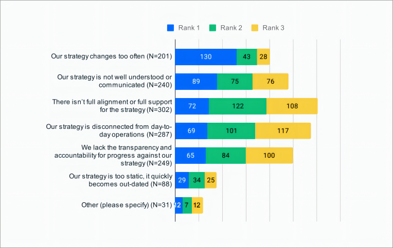 第二部分:问卷分析问题1. 执行整体业务战略时所面临的挑战