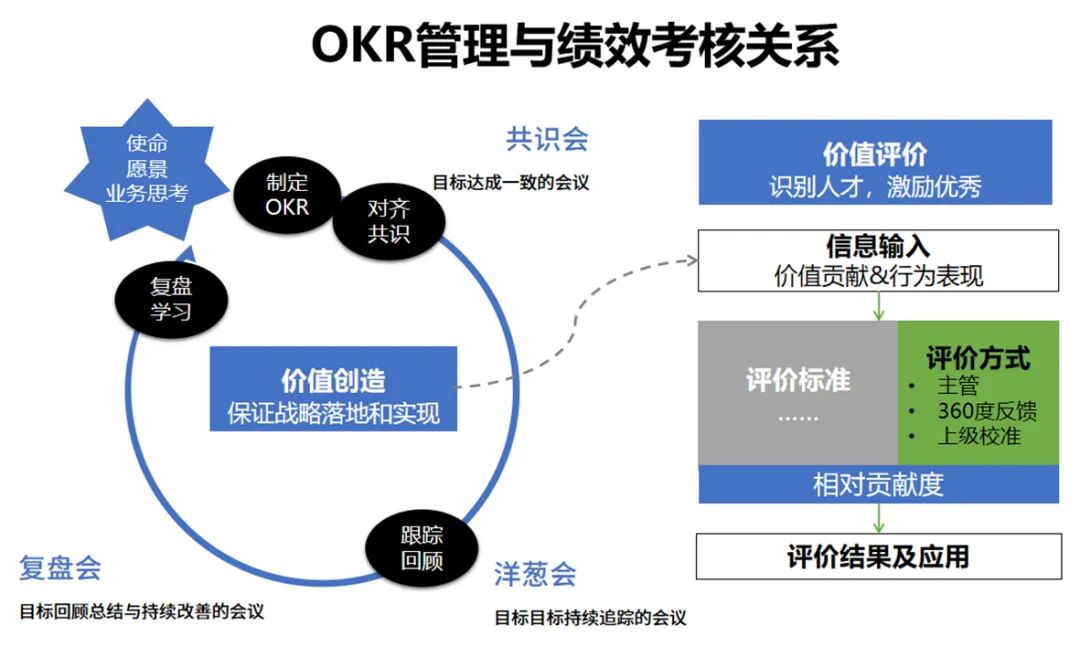 姚琼老师对话HRBP:如何推动OKR在企业落地?发表时间:2024-04-02 10:45 文/姚琼工作室 (互赫直播文字稿) 前不久,我应邀参加了互赫咨询举办的OKR线上闭门答疑会。直播现场参与的大部分都是HR,他们针对OKR撰写、应用、落地等全过程中存在的一些疑惑提出了一些问题,我针对一些出现比例较高的问题进行了直播答疑。今天,我把直播的部分内容分享给大家,相信可以帮助大家解决一些关于OKR的盲点,更好地理解和应用OKR。 01 问题1:OKR适用企业与范围 问:什么样的企业/组织适合用OKR的考核工具,对员工和管理者软硬性胜任力有无要求? 姚琼:考核工具这两个字用错了,应该是目标管理工具,我给改一改。有人说:谷歌OKR推得好,那是因为人家都是全世界最优秀的人才,它自驱力很强,关键工资很高。这样的工作就很起劲,推OKR当然成功。我们公司学历相对低一点。 我的回答是:任何企业和组织都可以用OKR,因为OKR是目标管理,任何一家公司都必须有目标。全球OKR的推广者约翰·杜尔也说,任何组织都可以用。 多数企业已经有目标管理工具,比如KPI,用OKR大都是为了迭代。如何迭代呢?行业不同,企业规模不同,在推动的时候也会有不同。我建议: 第一,OKR一般用于白领知识型员工。 第二,改善型创新型的岗位先用。 在白领里面,也有些人做的是重复和简单的工作,比如说在办公室里贴发票,这类人其实也没必要用OKR。用之前的KPI就可以了。 而那些工作相对比较复杂,需要创新和改善的岗位,如研发人员,技术人员,我们推荐使用OKR。OKR的推广和试点应该从这些知识型岗位开始。 第三,学历方面我认为没有要求,你进入到一个岗位,大概率你的基本能力是够的,是得到了企业认可的。 学历的高低并不能决定OKR用得好不好。一个博士如果他不相信OKR,他可能就用不好。学历不高的人,他认可OKR,特别想把工作做好,他可能用得很好。 第四、蓝领和体力工作者,包括店员等基础性的岗位,就不太建议用,用传统管理工具就好了。 02 问题2:OKR落地与推进 问:当前经济形势,战略摸索期企业如何推进OKR?对于内部分工而言,中台团队(非业务团队)如何推进OKR? 姚琼:今年疫情开放以后,我的感受也是经济都在下滑。我的工作需要跟各大企业打交道,我最近辅导的企业包括游戏公司、生物医药公司、物流公司等等,他们的反馈是第一季度和第二季度业务都不太理想,销售额比去年低。 战略探索期特别适合用OKR,因为不确定性比较强,需要动态调整。很多公司传统业务和新业务都在做,这种情况需要敏捷,OKR很适合。 我跟一个上海的一家集团公司HR交流,他们集团有16,000多人,一共有100多家公司现在开始推OKR。他们中后台是没有KPI指标,所以他们希望中后台也用OKR进行管理。 如何推进呢? 其实不管什么类型的企业,推进的流程其实是差不多的。如下图: ![]() 我以菜鸟为例给大家讲讲。阿里巴巴我辅导的第一个业务团队就是菜鸟。 我从7月份开始辅导到10月份复盘,我把这个过程称之为轻咨询,把自己的定位叫陪跑教练,我陪着菜鸟至少跑3个月,因为OKR是以季度来迭代的。 三个月为一个周期,第一期先做培训,不是纯粹的理论培训,是培训加实战,因为要现场写OKR。 接下来,菜鸟有在线软件管理系统,我们把OKR上传,称之为发布和共识。 接下来的动作就是OKR的推进会,每周、每月都有复盘会。像阿里巴巴这样的企业,有很多自己的创新点,比如除了基本的OKR会议,他们加了庆功会,把氛围搞上去。 下一个季度开始重复,他又要写下一个季度的OKR,又要开始周会和月会和复盘会,所以OKR是滚动的,每个季度进行一次迭代。 我在课堂上讲的有12步(如上图),这其中有几个步骤很关键。比如,高管支持。我最骄傲的是阿里巴巴张勇宣布全员推广OKR,因为他非常认可。OKR是一定要一把手去推动的。我给菜鸟做辅导时,他们的CEO带头在推。字节跳动张一鸣在推,百度李彦宏在推。没有高层的支持很难落地。 还有第四步:确定试点,这个也很重要。最好是选择一个创新的业务部门去做试点,规模小一些的公司可以选择中层做试点。 第五步:确定OKR的推动者也很重要,大部分公司是HRBP在推,阿里是OD推,也就是政委,由谁来做这个事,我们要定位好这个OKR项目负责人。 接下来比较重要的是OKR的三个会:共识会,大家的OKR要发布和对齐,这个我会全程辅导;持续追踪会,包括月会周会,这个大部分是自己开,有时候我也会辅导;复盘会,一般我会带着大家开一次。 先把一个周期跑起来,再进行季度性地迭代。半年后我会做一个调研,看看OKR大家到底大家认不认可,用下来有没有价值,然后再部署到全员。 我们一般不会建议一下子就全员铺开,都是先在管理层或者某一个部门做试点。 03 问题3:OKR培训与宣传 问:如何做好全员OKR的培训启动会?依托文化氛围的张力如何将全员OKR的兴奋值达到最大化? 姚琼:怎么样让员工感到兴奋?其实还挺难的,企业原有这种文化基因的,会做得比较好一点。比如阿里,在培训之前,我和他们的高层晚上11点钟开会,来讨论怎么设计场地和氛围,包括制作教室里面的这些看板、口号等。在培训之前,要做这些准备工作,包括前期的调研,然后才去开展这样一个培训会。 培训会上领导一定要站台,这个对氛围的推动很大,大领导来,你会发现这个培训氛围就很好,大家也都很重视。 另外,前期要做好铺垫工作,比如我们会给大家发一些资料,包括姚