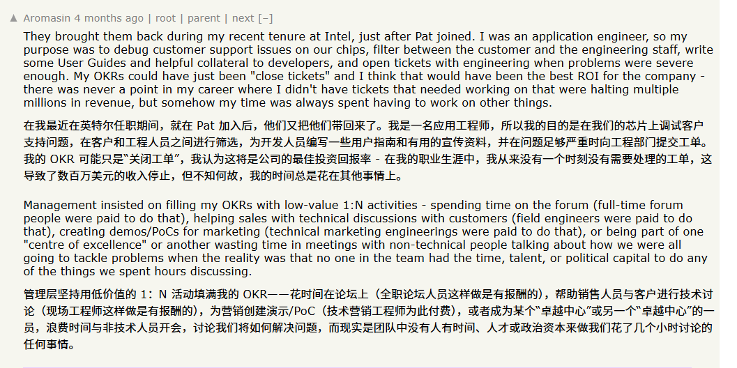 从OKR先驱到OKR可选,英特尔发生了什么?发表时间:2025-06-20 10:58 ![]() ![]() 1970年代,作为管理学理论创新的先锋,安迪·格鲁夫(Andy Grove)在英特尔首创了OKR(Objectives and Key Results,目标与关键成果)方法。 自此,OKR如同一枚燃料,点燃了科技公司追求卓越、敏捷与创新的引擎,并在谷歌、亚马逊等行业巨头广泛复制推广。 2025年4月,首席执行官陈力武(Lip-Bu Tan)宣布OKR转为“可选项”。 ![]() ![]() OKR这一管理利器,为何在原生地英特尔迎来变革? 曾经依靠OKR缔造辉煌的英特尔,究竟为何撤下了这面“管理旗帜”? OKR真的已经不再适配英特尔,还是它在复杂组织中走向了异化? 1 英特尔的OKR之变从强制到可选的背后![]() 透过陈力武面向全员的备忘录,我们可以看到英特尔高层对于OKR变革的真实考量。 他指出:“英特尔内部存在过多的行政流程和层级结构,决策缓慢、创新受阻。需要彻底简化流程,将时间、精力最大限度聚焦于客户需求。” ![]() 简而言之,OKR在英特尔已沦为冗杂行政任务,其初衷——聚焦目标、激活组织——被官僚主义和形式主义侵蚀,工具变成了枷锁。 所谓“OKR可选”,意味着每个团队可以自由决定是否采用OKR体系进行目标管理,无需再机械地追溯、编写和考核“标准版”OKR。 这既不是放任管理的退步,也不是目标管理的放弃,而是对繁文缛节、官僚流程的有力反思和应对。 英特尔以实际行动提醒业界:管理工具的价值,取决于是否真正服务于目标、激活团队,而不是自我目的化的流程负担。 2 巨头的困局英特尔这些年到底怎么了?![]() 要理解OKR转型背后的根本原因,不能忽视英特尔当前所遭遇的外部与内部双重压力。 2024年12月,CEO帕特·基辛格(Pat Gelsinger)辞职,英特尔进入领导层动荡周期。随即,2025年公司的经营困境加剧:第一季度亏损8亿美元,营收止步于127亿美元,连续两年的人事结构调整和大规模裁员(2024年8月1.5万人,2025年4月中层20%裁员)令公司文化与士气遭受冲击。 与此同时,市场格局剧变。英伟达(Nvidia)在AI芯片和高性能计算领域树立新一代技术标杆;台积电(TSMC)在先进制程持续领跑,令英特尔在核心制造能力上屡屡受挫;AMD凭借高性价比CPU和GPU,在多个市场斩获份额。内外夹击下,组织本身的响应速度、改革能力成为能否突围的关键。 在下面的年营收对比图中,我们可以看到,英特尔(橙色)营收连续 15 年持平,到 2020 年后持续下降;而Nvidia(蓝色)爆炸式增长,AMD(紫色)近五年来也呈现显著增长。 ![]() 在Hacker News等技术社区,英特尔员工直言不讳地批评,OKR已变为“低价值活动清单”,技术人才必须将本应专注重要工作的精力分散到各种无效流程和会议上——这不仅付出了机会成本,更令员工激励机制崩塌。 ![]() OKR的实施方式出了问题,它脱离了管理初衷,绑架了组织活力。 3 OKR为何陷入官僚主义?![]() 追溯OKR的初衷——透明目标、聚焦关键结果、持续反馈。这一方法能让组织目标下沉至每一位团队成员,让大家“知其为何而战”,并鼓励自主性、跨部门协作及动态调整。 但落地实践中,只要操作过度流程化、与绩效绑定过紧、丧失敏捷调整空间,OKR也容易异化为僵化、官僚的打分工具。 雅虎曾以Google的OKR为蓝本,推行QPR(季度绩效评估),而且和绩效评级直接挂钩。但执行时硬性分级,要求强制分布,导致员工队伍被人为“分层淘汰”,甚至因被滥用而招致法律诉讼与员工离心。员工变为制度下的“筹码”,团队创造力和归属感反而严重受损。 回到英特尔的案例,组织庞大、层级复杂的情况下,管理者更易“为管而管”,忘记了OKR是用来“激活团队活力”和“聚焦关键价值”的。最终,OKR被僵化成每季度、每月的行政负担,甚至成了给管理层“交差”的敷衍作业,失去了原本的驱动力量。 4 不是放弃OKR而是用对OKR![]() 英特尔的这次转型并不代表否定OKR这一方法论,更不是全面放弃目标管理,而是一次对管理常识的回归:工具、方法、流程永远是为战略及组织目标服务的,而非成为自身的负担和枷锁。 “OKR可选”,意味着给予一线团队和个人足够的自由,让他们在合适的场景下自主决定是否采用OKR,并可以灵活调整周期、内容与落地方式。这样的调整不仅是制度上的松绑,更是公司文化的重新审视——反思官僚主义、鼓励简政放权、重塑对创新与客户需求的敏锐响应力。 在你的团队中使用OKR,这三个问题或许值得反思: 你的OKR是否真正聚焦在关键业务成果上,而不是“为了完成任务而写”? 它是否允许团队根据实际情况灵活调整?还是沦为刚性打分和机械绩效指标? 团队成员是否真正参与到目标制定,以及对成果的承诺?还是仅仅“被管理”? OKR的生命力,在于与组织的活力相互激荡。 在剧变年代,与其纠结于“该不该用工具”,不如警觉于“能否用得其所”——这或许才是从英特尔之变中最值得汲取的管理智慧。 ![]() 声明:此篇为姚琼工作室 - 专业指导企业OKR落地原创文章,转载请标明出处链接:http://okr-china.com/h-nd-165.html